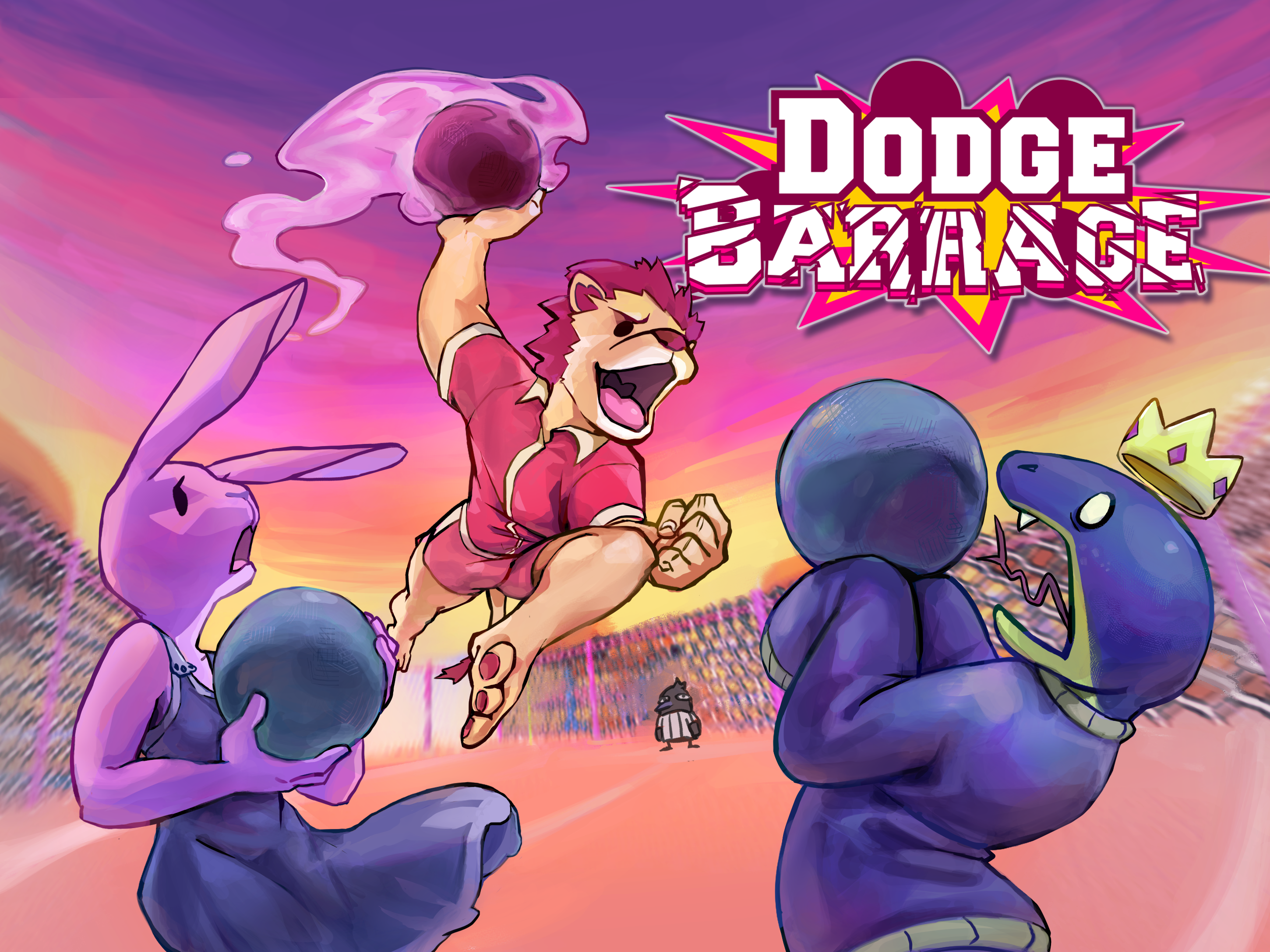 Dodge Barrage is a chaotic dodgeball party game. Use quick reflexes and aggressive plays to throw, dodge, and parry your way to victory. Play with up to four players either locally or online.