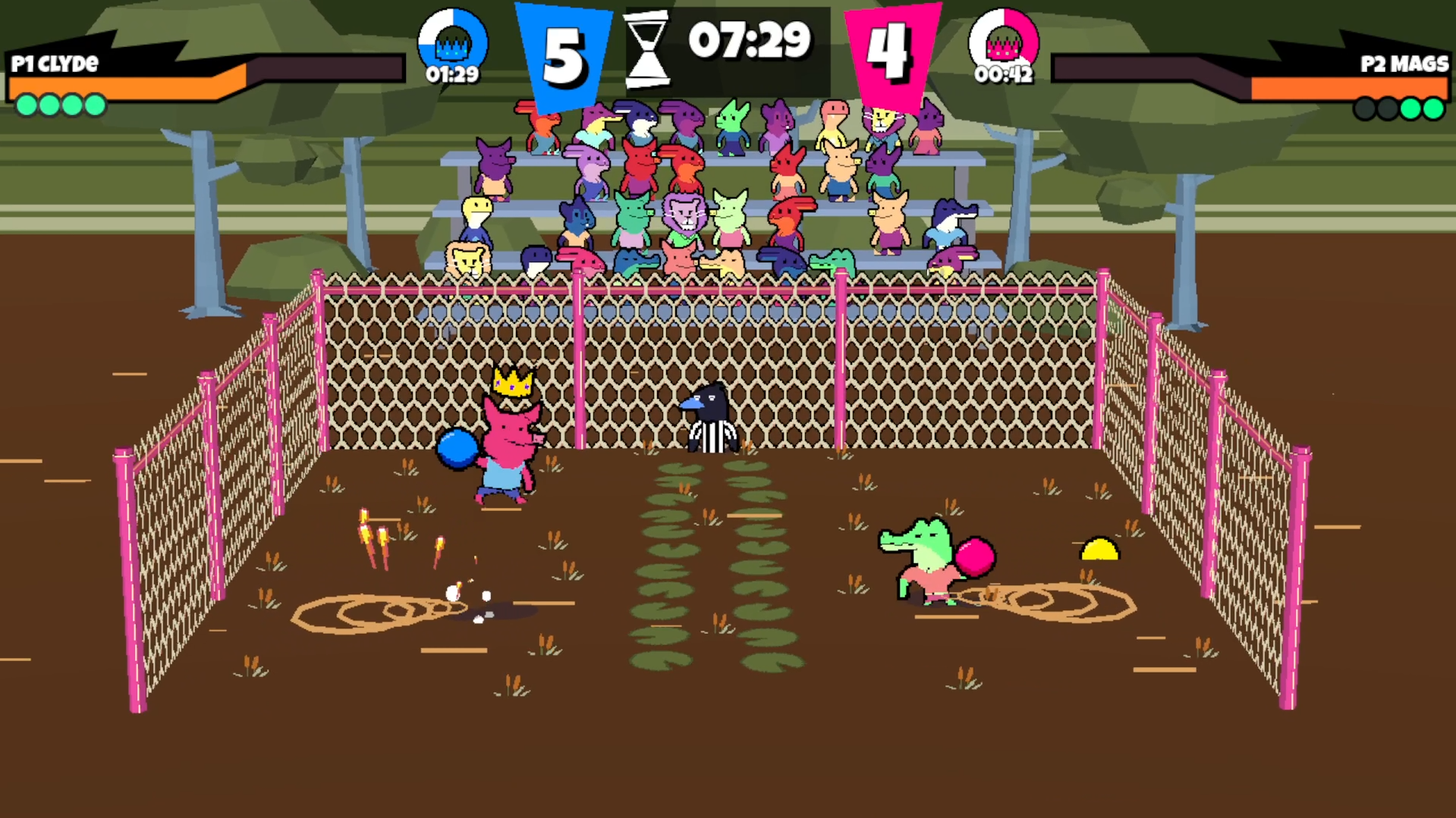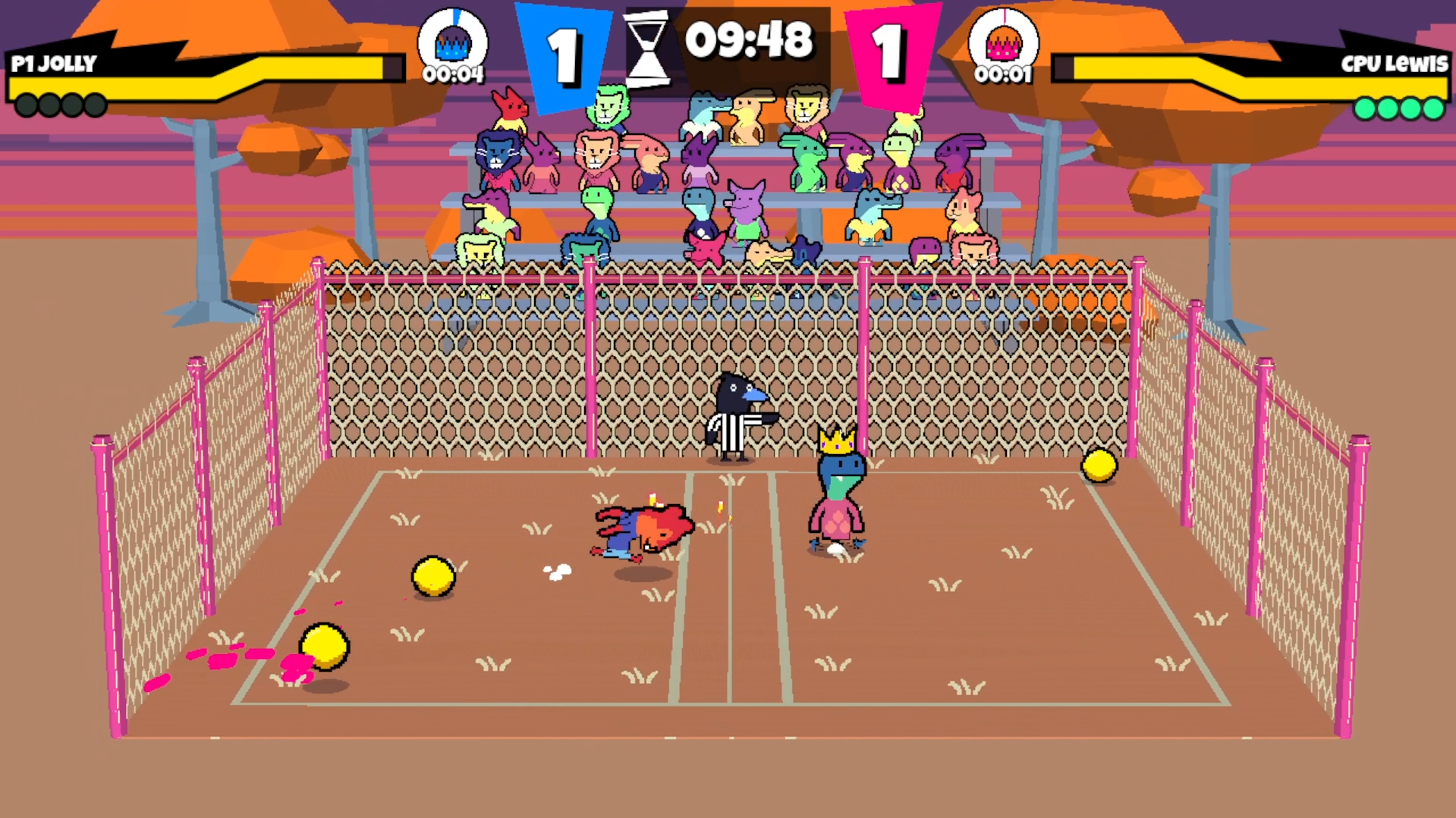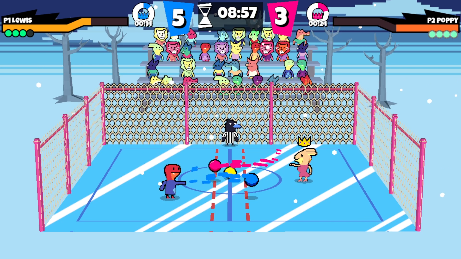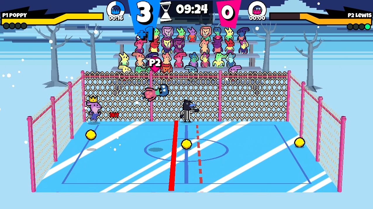 - Low Gravity - Both players and balls falls slower, so jumping requires more commitment.